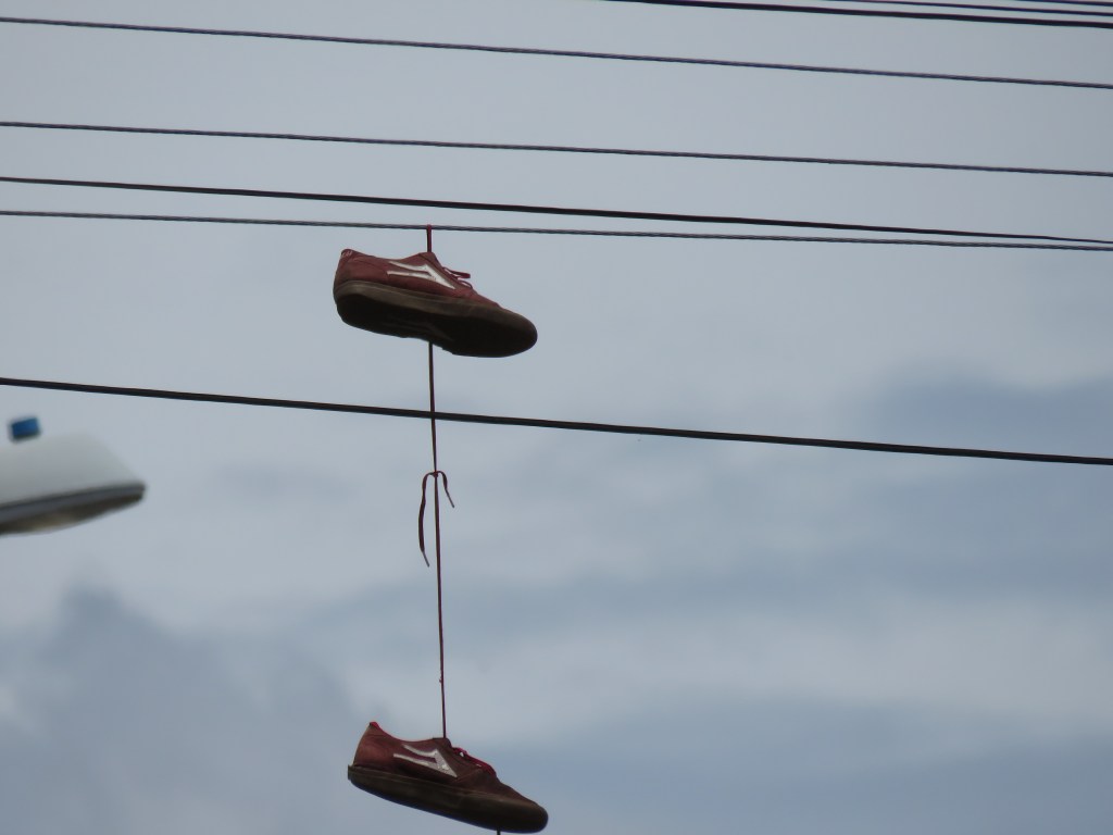 No vamos a mostrar todos los zapatos que cuelgan en las faldas del Poás, pero sí les vamos a explicar para qué son. La presencia de zapatos colgados del tendido eléctrico significa que cerca del lugar hay un distribuidor de drogas, con regularidad la comunidad sabe el nombre donde vive y su procedencia.