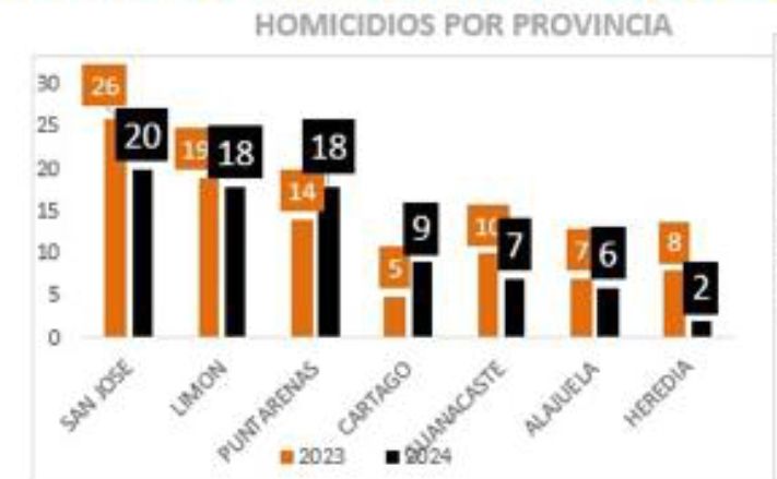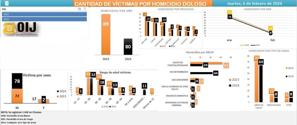Según la información sumistrada por el Organismo de Investigación Judicial, se muestra una disminución en comparación con el mismo período de 2023.