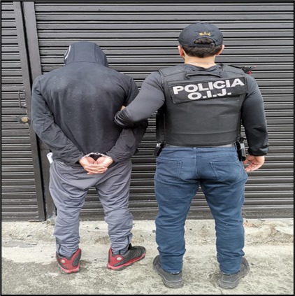 Un hombre de 22 años de apellido Parrales fue detenido por agentes de la sección de homicidios del Organismo de investigación Judicial, este 13 de junio de 2024, en el sector de los Pinos de Alajuelita.