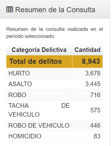 La siguiente es la tabla de incidentes delictivos en el 2023, en el cantón de San José, según el Organismo de Investigación Judicial.