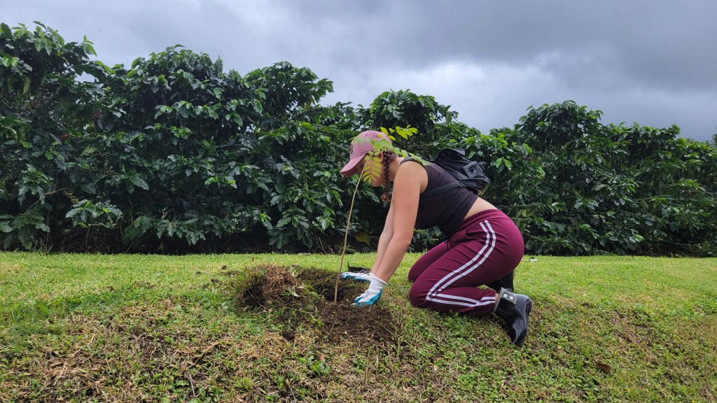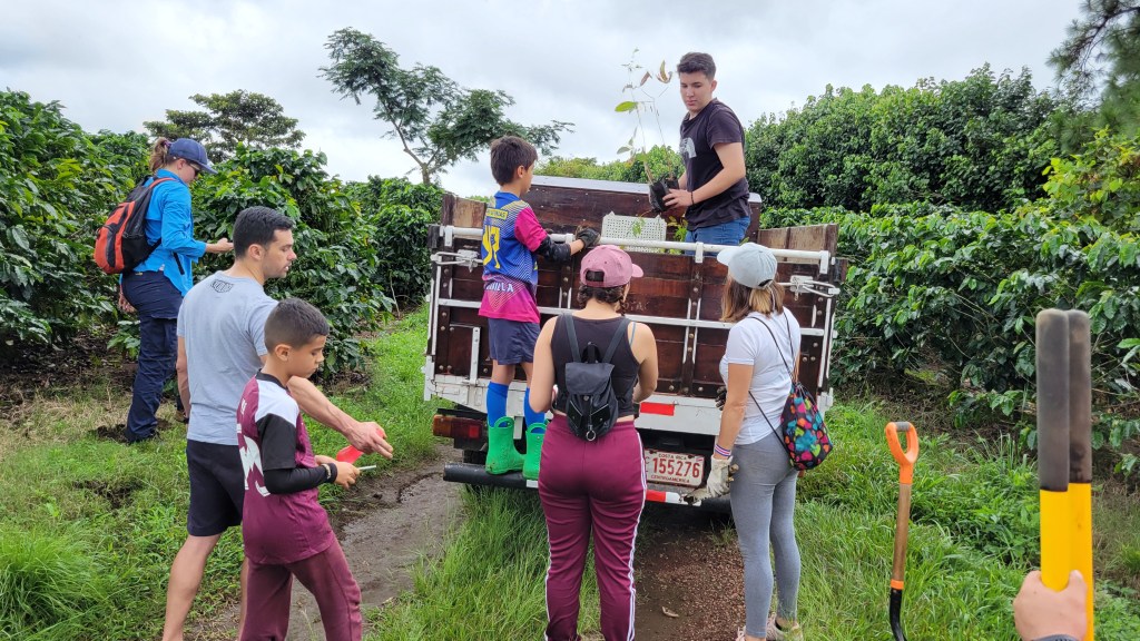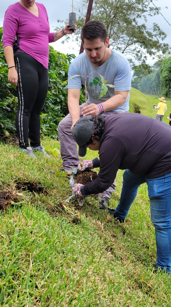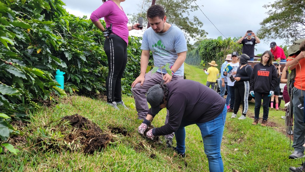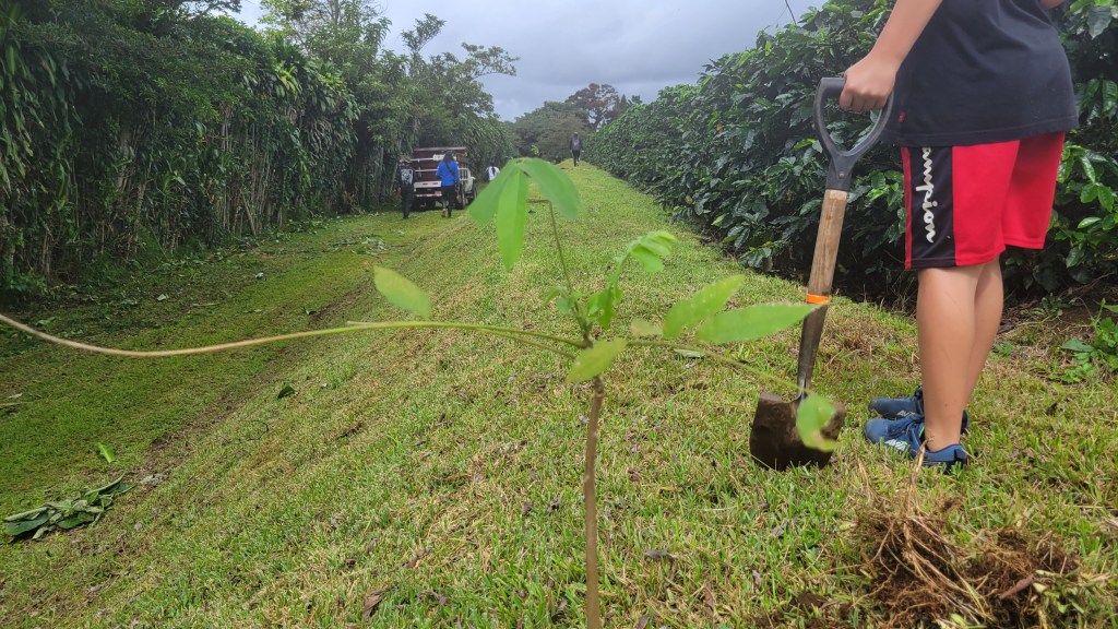 Josué Arce de Reforestación Costa Rica explicó que estos 250 árboles son producto de una donación de UESPRA (Unidad especial silvestre de rescate animal) y don Eladio Gutiérrez Carvajal, capataz de la finca indicó que al cultivo del café no le afecta tener sombra y no compiten por nutrientes del suelo con los árboles.