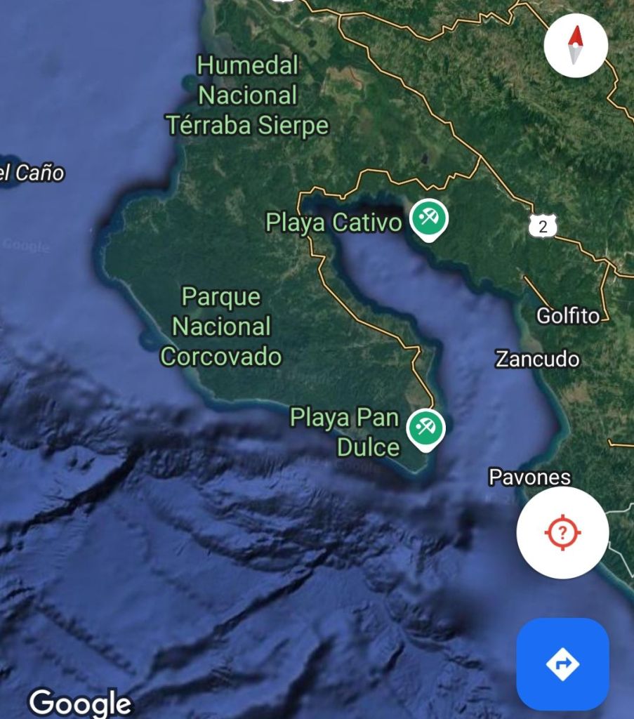 Un oficial de Fuerza Pública de apellidos Abendaño Carmona y de 28 años, que no aparrce al caer de la embarcación en la que viajaba con tres compañeros más en el Parque Nacional Corcovado, en el sector de Playa Sirena.
