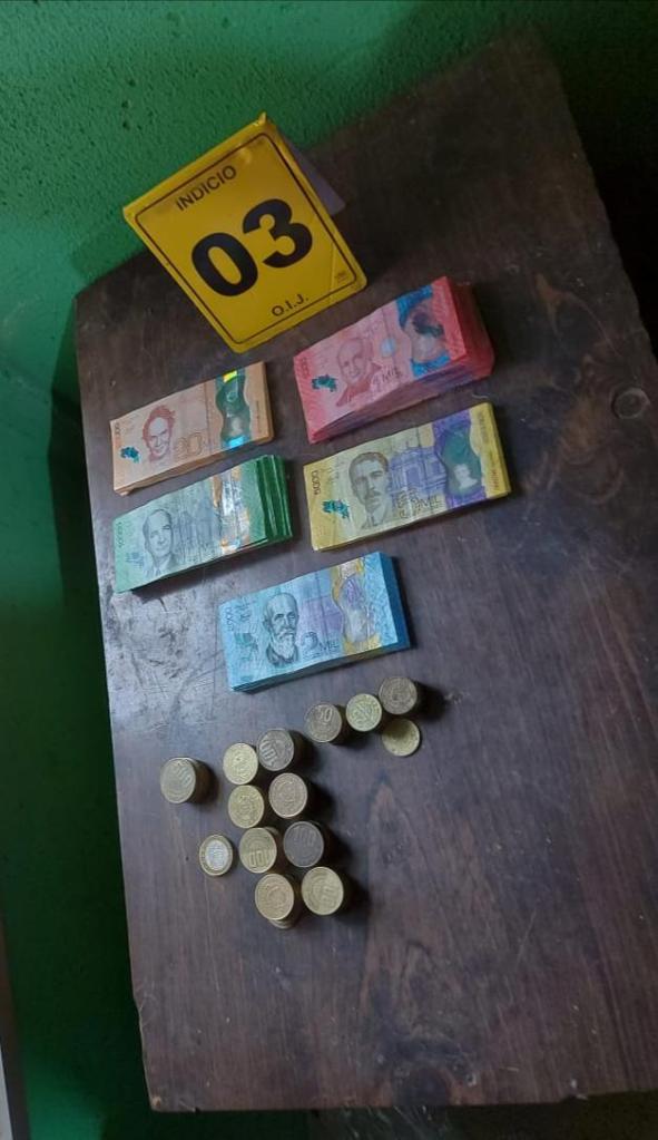 En el lugar se logró la aprehensión de tres personas, una mujer de apellido Valdivia de 33 años, nicaragüense, un hombre de 38 años de apellido Robles, nicaragüense y un hombre de apellido Padilla costarricense, así como el decomiso de: