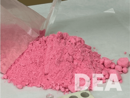 La cocaína rosa es una mezcla de varias sustancias diferentes; cada lote es diferente y nadie sabe cómo reaccionará su cuerpo cada vez. La única característica común de la cocaína rosa es su color rosa brillante. Fuente DEA.