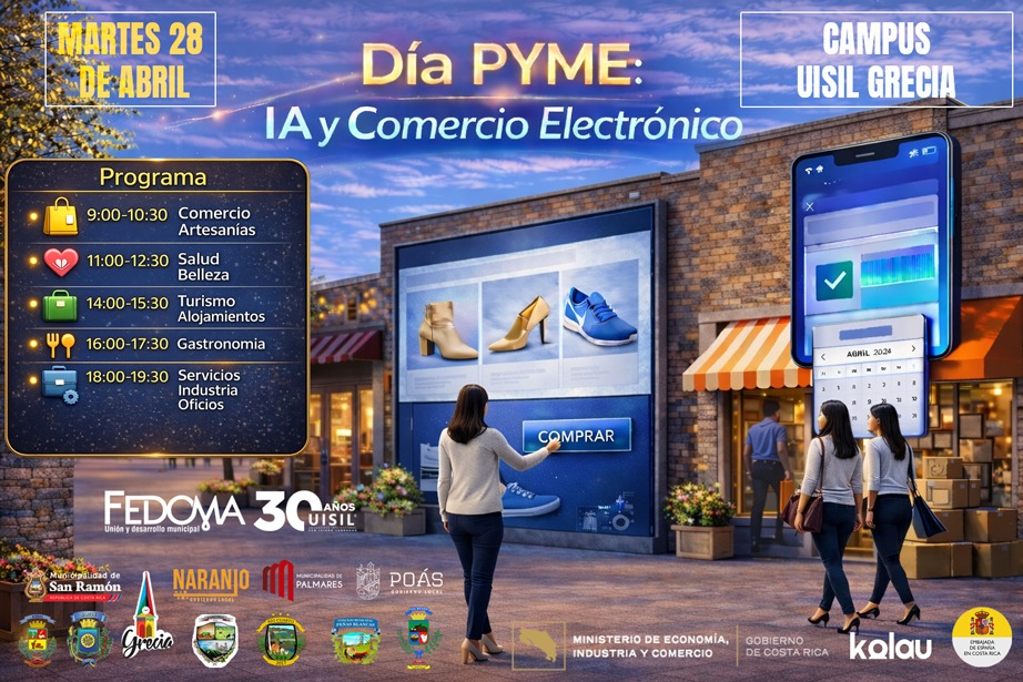 Le invitamos al «Día PYME: IA y Comercio Electrónico», el ¡mayor evento presencial de comercio electrónico para Pymes de Costa Rica! Podrá crear su tienda en línea con IA GRATIS 💪🚀